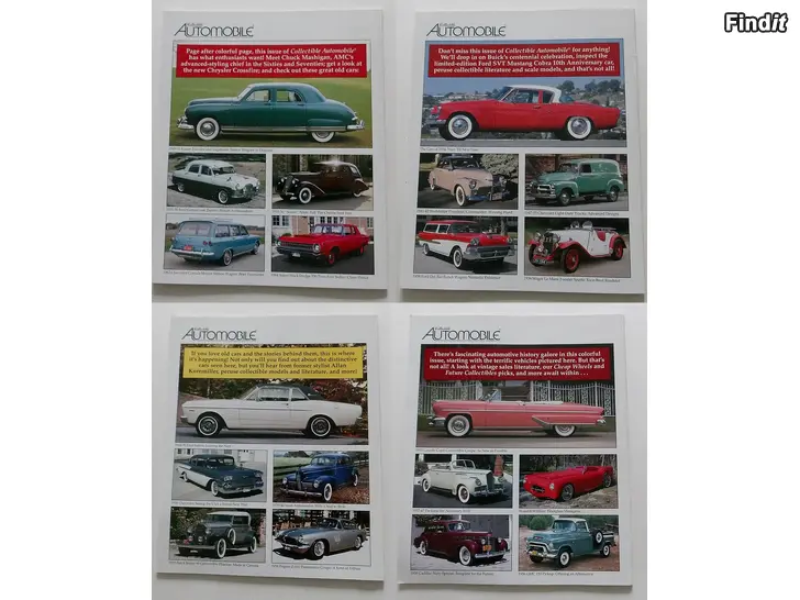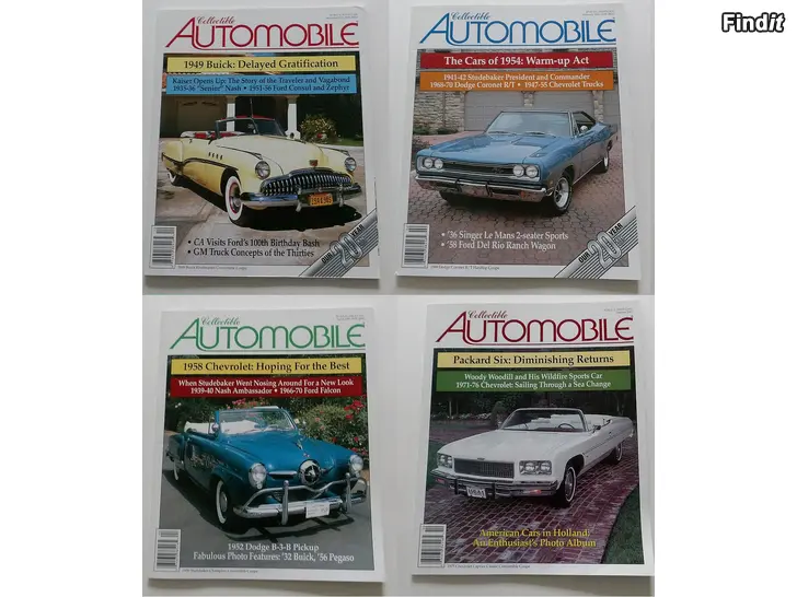 Amerikkalaisen Collectible AUTOMOBILE -lehden vanhoja numeroita vv. 2003-2005, joissa erittäin korkealaatuiset kuvat ja selostuksia automalleista ja niihin liittyvästä historiasta. Myyn 7 kpl. nipussa, kaikki lehdet siististi säilytettynä aikakauslehtilaatikossa hyllyssä, uudenveroisia.