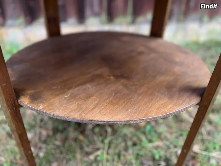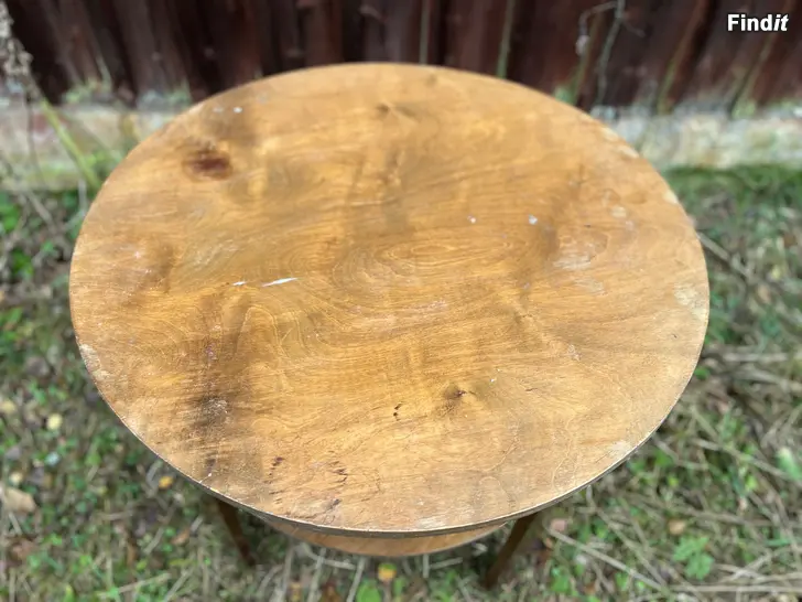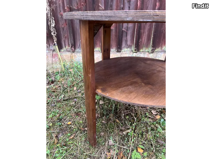 Gammalt Brunt runt bord. Lite spår av användning kan se på bordsytan. Diameter ca 75 cm. 20€. Kärklax, Maxmo.