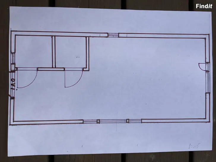 Sisämitat noin 7m x 3m, sisäkorkeus noin 2,3m. Sisältää huonetilan, wc- ja suihkutilan.