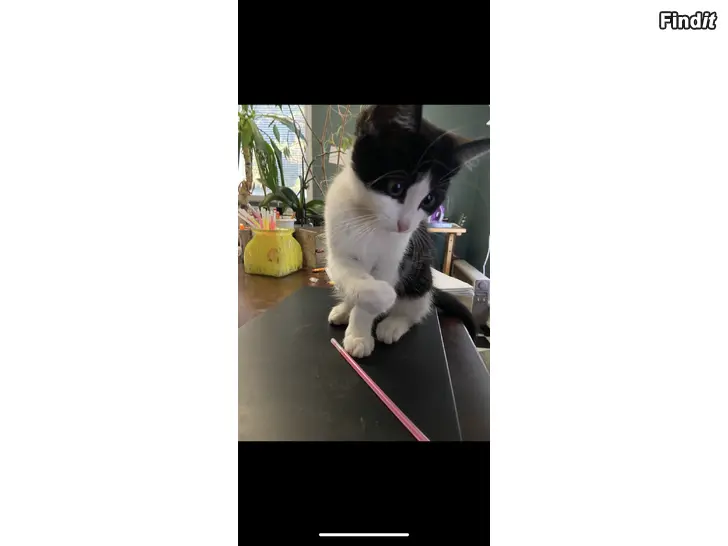 Kissanpentu 12 viikkoa tyttö, madotettu etsii omaa kotia. Tottunut lapsiin ja kaneihin. Musta-valkoinen, normaali kissanturkki. Käy jo joskus ulkona muiden kissojen kanssa, joten sen tulevassa kodissa tulisi olla mahdollisuus sekä sisä- että ulkoiluun, sillä on tottunut siihen.