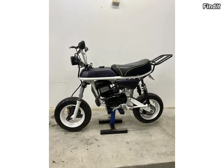 Nyrenoverad motor med nya lager, stefor, packningar. Ny 80 cc cylinderkit med läppä och allt. 20 mm Dellorto, sportfilter, trimrör och tyngre drev.