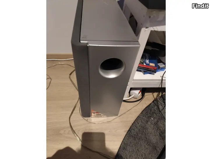 Settiin kuuluu 4 pylväskaijutinta,keskiääni kaijutin 350 wattinen subwoofer ja vahvistin