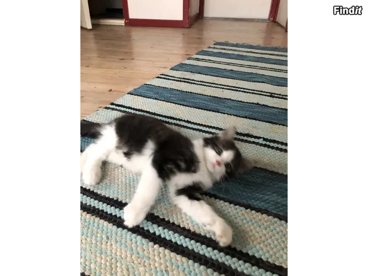 En liten burrig svartvit frass söker ett nytt hem från och med 1.12. Då är han mogen att flytta hemifrån. Pris: 20 €