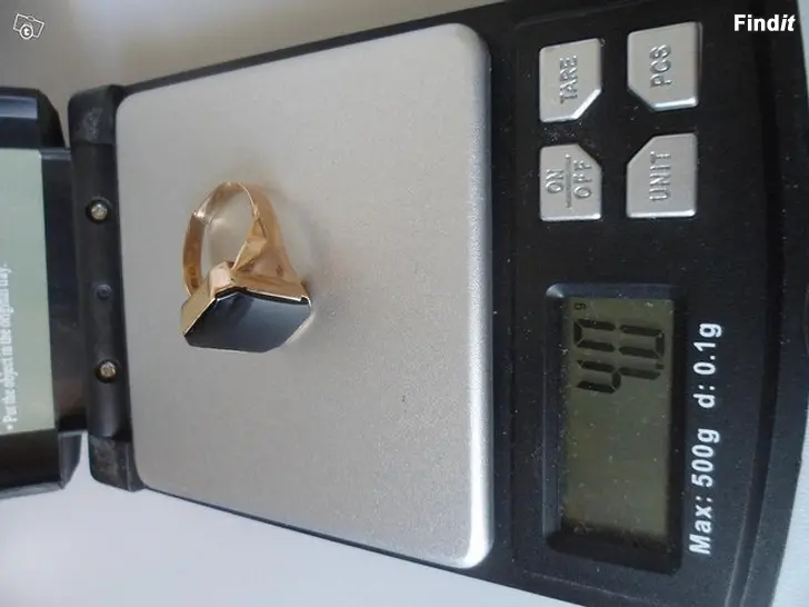14 karaatin kultaa ja paino 4g. Isokivinen ja näyttävä.