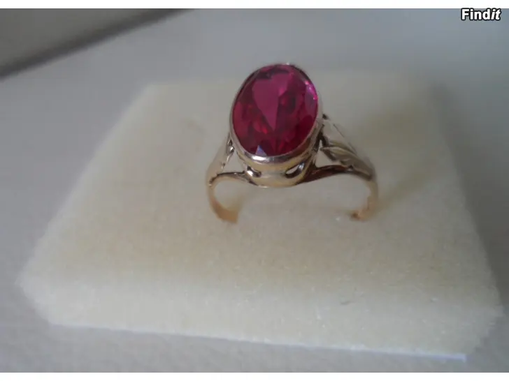 - Rubiini Kultasormus 14K koko 18 Vintage v.1942