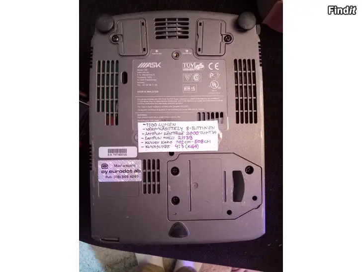 Hyvässä kunnossa oleva videotykki kaikkine tarvikkeineen tarjoa