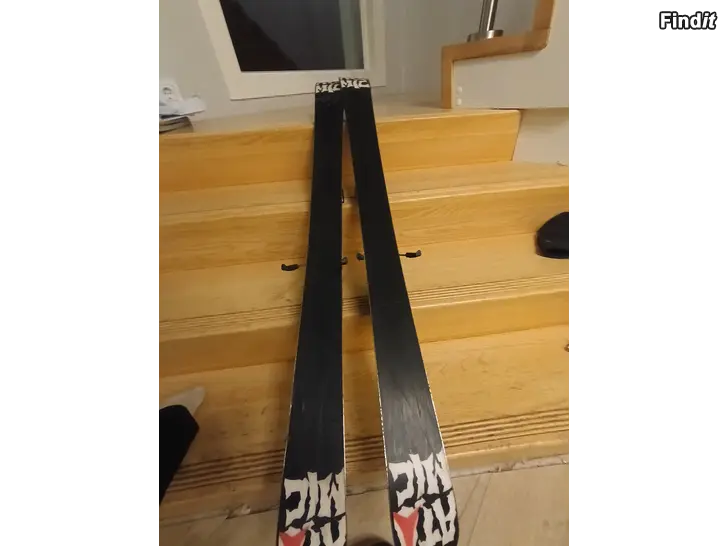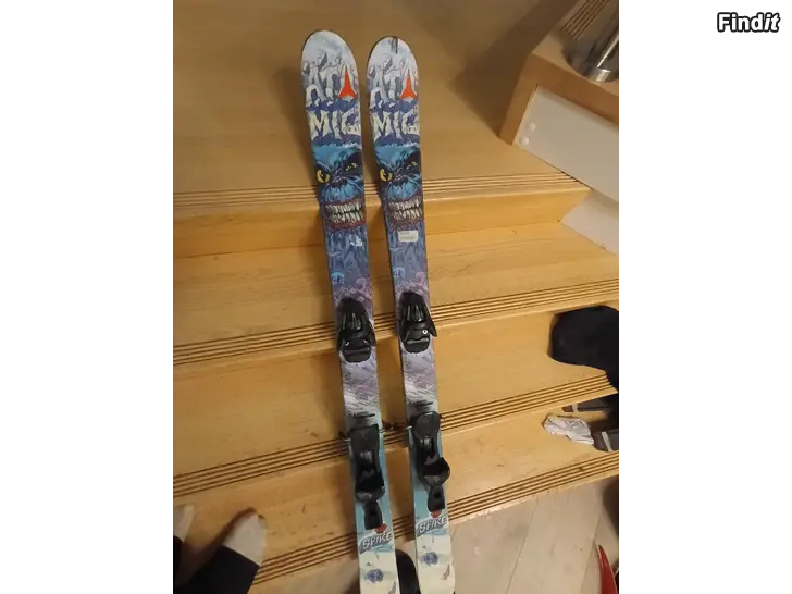 Ett par Atomic twin tip 130 cm går bra i park och skog inte använda mycket finns en liten repa ovan på skidan men den stör inte åkningen priset kan diskuteras