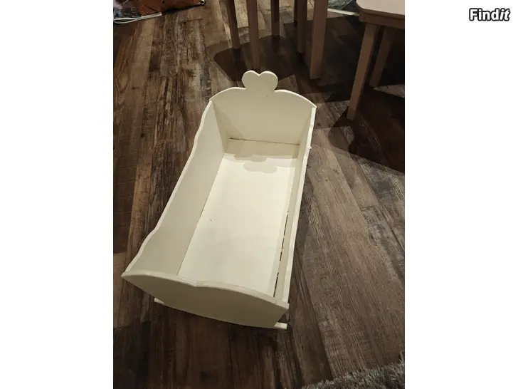 Nytillverkade dockvaggor i vitt eller gammaldags rosa. Längd ca 45 cm