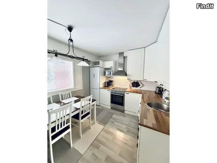 Kaksikerroksinen 3h+k+s -koti rauhallisella alueella. Oma sauna, oma piha, terassi ja parveke. Mukana lämmin ulkovarasto ja autokatospaikka. Asunnossa on kaukolämpö.