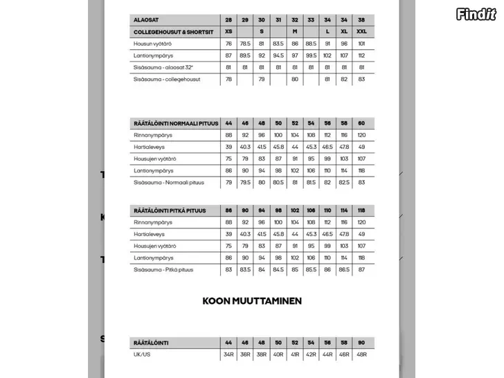 Näistä lisäkuvia kommenteissa , samoin kokotaulukot, joista mittoja .