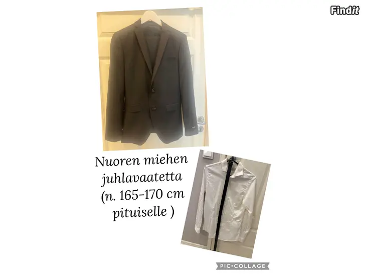 Myydään Jack &Jones premium - puku ,musta, takki superslim 44, housut super slim fit 42 . 1 tai enintään 2 juhlat käytössä , kunto siis erinomainen . nuorella miehellä silloin pituutta noin 165-170. Mukaan Jack &jones premium - juhlapaita , koko XS sekä musta nahkavyö Cubus .