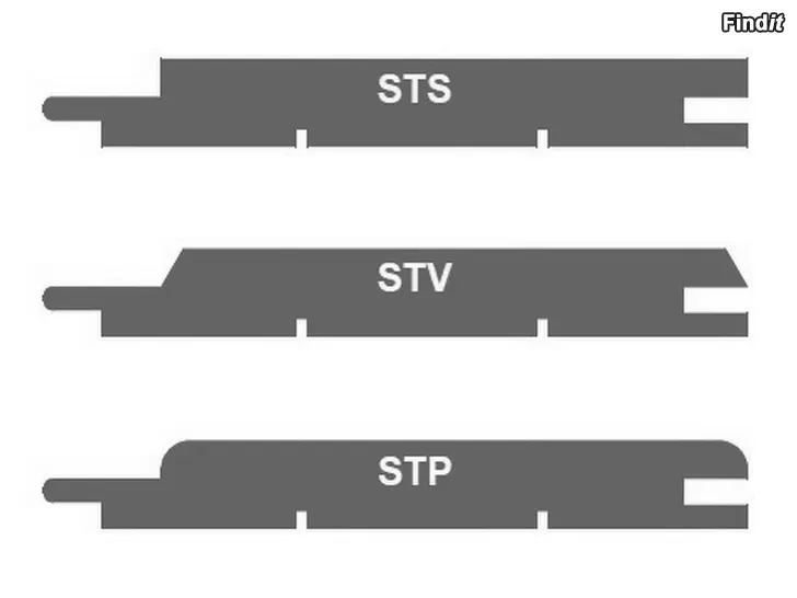 STP-profilen har en mjuk rundad kant. Trendiga STS-profilen är helt rak och ger en slät yta. Den traditionella STV-profilen har en sneddad kant.
