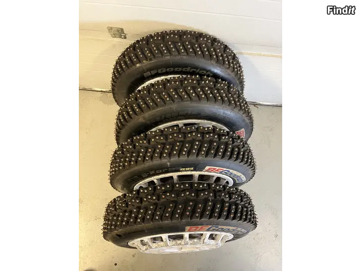 Myydään 16 tuumaiset BF Goodrich piikkirenkaat 145/80 R16 ja Compomotive Motorsport vanteet.