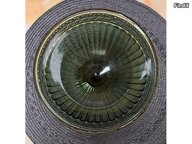 Tummanvihreä Kara tarjoilukulho / -malja, korkeus 15 cm ja halkaisija 13,8 cm.
