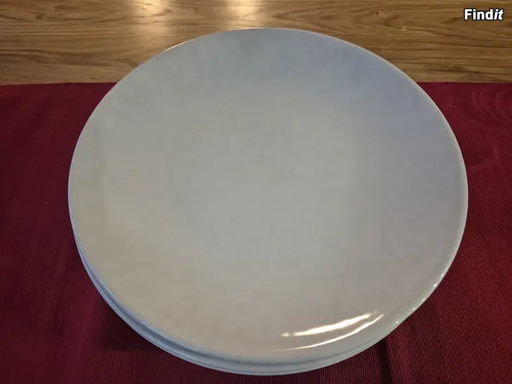 Säljer 7 st vita mattallrikar, 27 cm stora. Spår av användning men annars i gott skick.