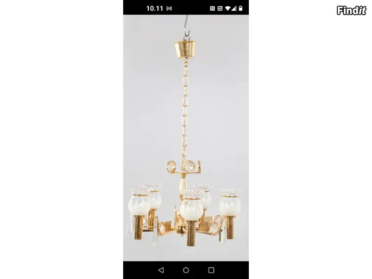 Kattokruunu eli riippuvalaisin , valaisin roikkuu katosta ketjun ja kattokupin avulla. Se on tyyliltään klassinen, mutta siinä on myös modernia ilmettä . Nouto Vaasasta.