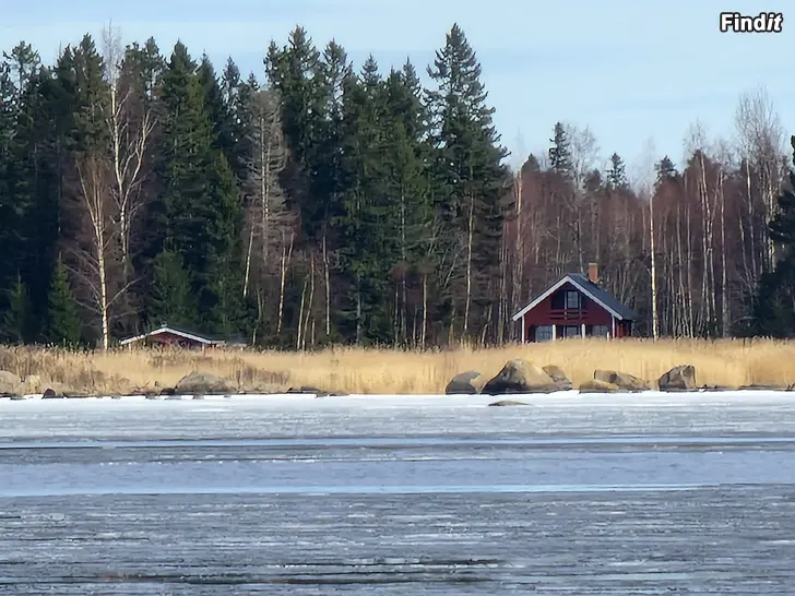 Weekend hus 50 m2 med separat bastu 16m2 byggt 1987, tomt 3000m2 med syd/väst strand, bilväg till tomten, el vid tomtgräns ej anslutning större tomt kan fås om önskas. Pris 75t € tel. 0505163900