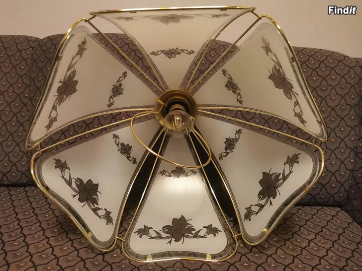 Lasinen kattolamppu, halkaisija 42 cm, ehjä ja toimiva