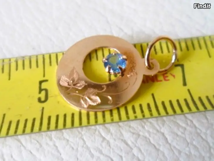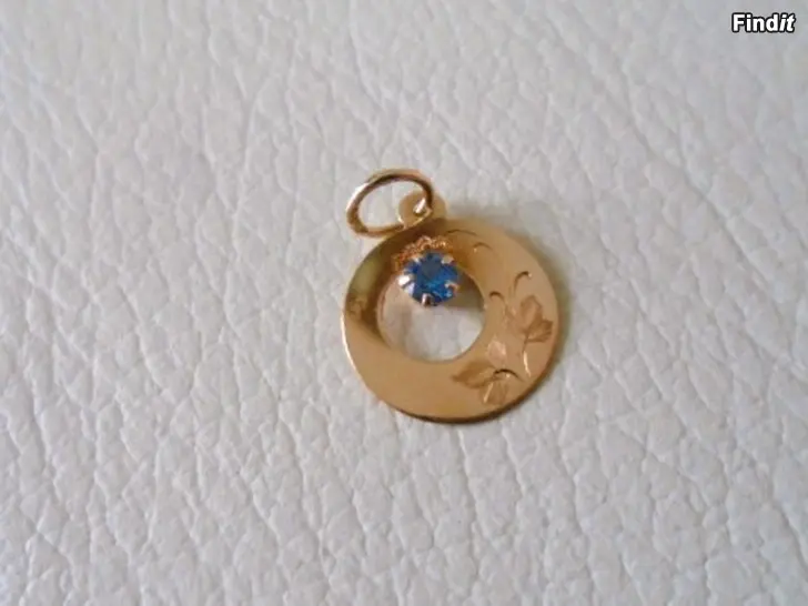 Kuvioitu riipus 14 karaatin kultaa, vaaleansininen kivi