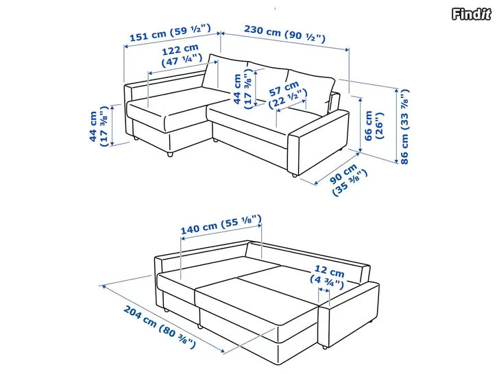 Kommenteissa lisäkuvia levitettynä, sohvan sävystä jne.