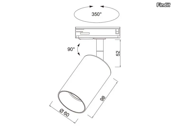 Alumiinirunko. Valkoinen Ral 9010 Musta Ral 9005 Suojausluokka I. Global Base 2 1-piirikiskoihin. IP20. Max. 7 W led-lamppu GU10 Lampun pituus max 57 mm. Valonlähde tilattava erikseen tarvittaessa Käyttöympäristön lämpötila 0 … 35 °C.