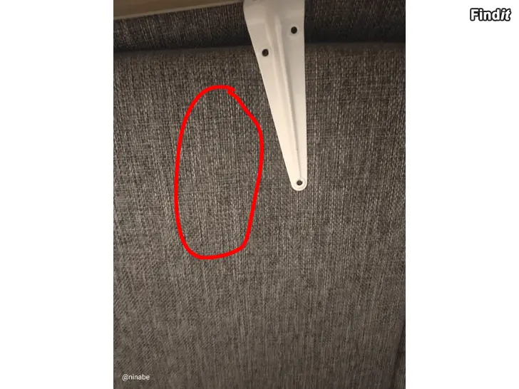 Sohvan takaosalla on ollut kiinnitetty hylly, joten löytyy muutama ruuvausreikiä mutta ne eivät näy ollenkaan kts kuva Kangas muuten ehjä. Ei eläimiä.