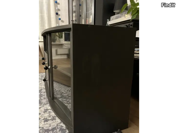 Säljes svart TV-bänk, om-målad med kalkfärg.