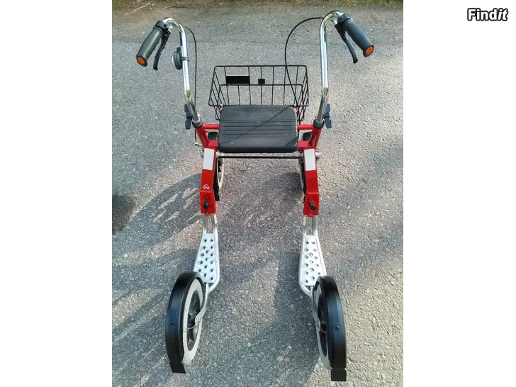 Potkupyörä / Rollaattori lyhyt malli. Kevyt käsitellä soveltuu ulkokäyttöön ja myös sisätiloihin. 12 tuumaisilla renkailla, säädettävät ohjaustangot, istuin, jarrut / pysäköinti jarruilla, tavarakori, irrotettavat jalakset. Väriltään Hieno Met Hohto Punainen. Voidaan myös tuoda ostajalle tai lähetys mahdollista matkahuollolla. Ota yhteyttä 0401947979