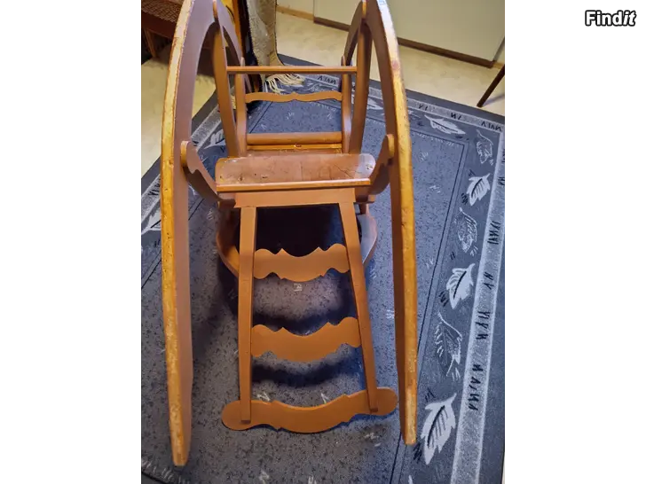 Vähänkyrön Järvenkylästä 1960-luvulla meille suvun perintönä tullut suuri ja tukeva, keinutuoli. Aiemmasta historiasta ei ole enää tietoa. Kerron ostajalle omistajien nimet.