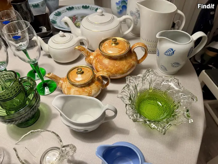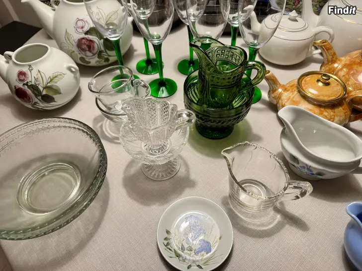 Säljes porslin och glas av Arabia, Riihimäen lasi, Nuutajärvi och Humppila. Vid intresse, tag kontakt via mejl så skickar jag mera info och bilder. Säljes separat eller allt i ett om så önskas.