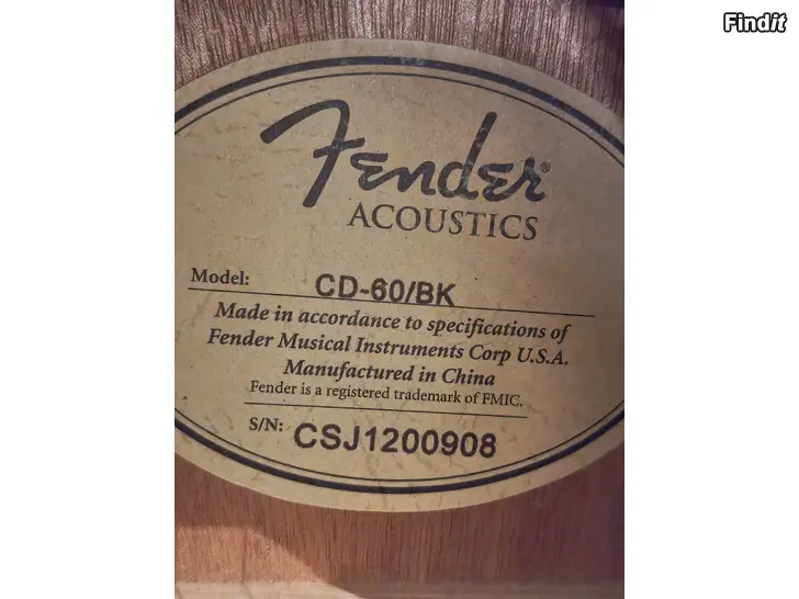 Fender CD-60 stålsträngad gitarr. Nya Earthwood Light strängar. Gitarren är i väldigt bra skick för sin ålder, väldigt bra ljud på denna.