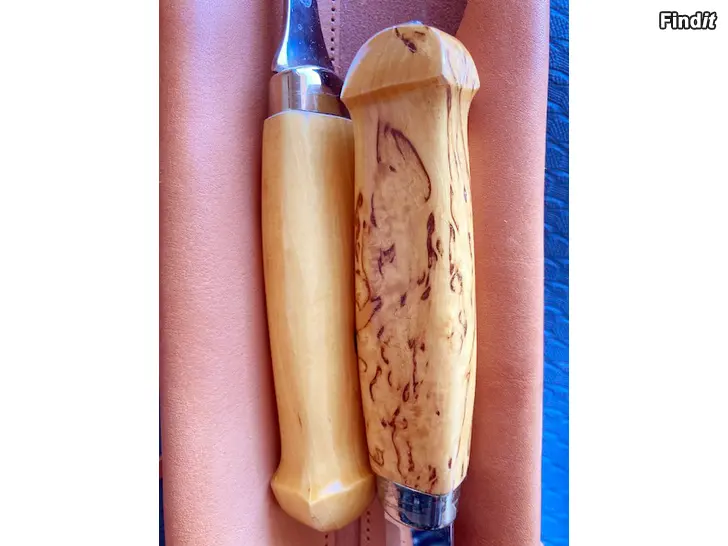 Paistisetti visakoivukahvoilla, design Leena Kartila, terän pituus n. 20 cm.