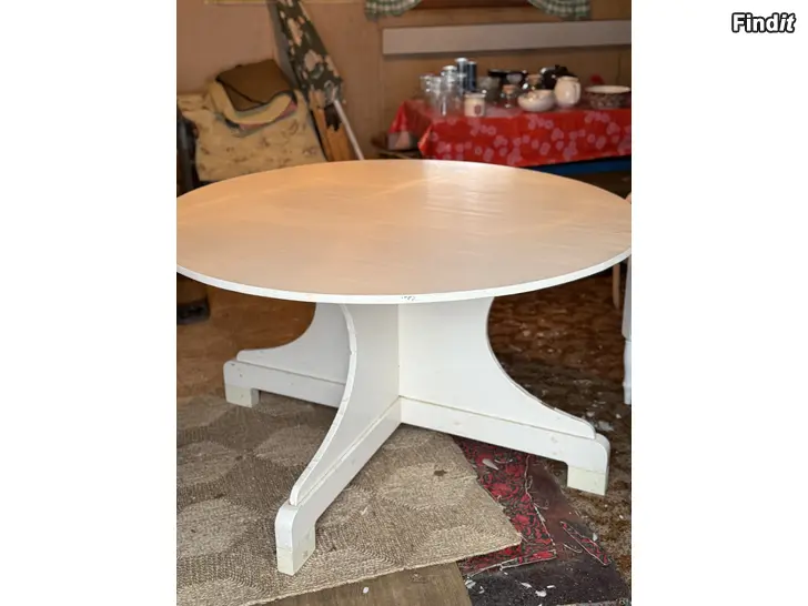 Säljes runt köksbord. Diameter 130 cm. 75 cm hög.