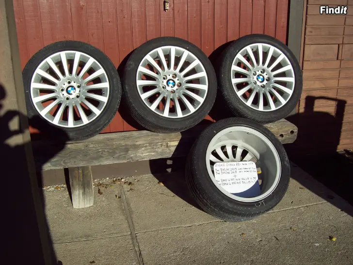 2 kpl Radar Dimax R8+ 245/45ZR19 pintaa 4.5-5mm paisto -17 vanteet BMW 6 775 404 8.5J19 is 25 sekä 2 kpl Radar Dimax R8+ 275/40 ZR19 pintaa 5.5-6mm. paisto -17 vanteet BMW 6 775 405 9.5J19 is 39. Kaikissa vanteissa tietysti jako 5x120 ja keskireikä 72.6 ja kaikki suoria ja hyvässä tehtaan maalissa keskimerkeillä. Vierintä kehä tasan sama kaikissa eli käy myös X-Drivet ja sellaisessa ollutkin.