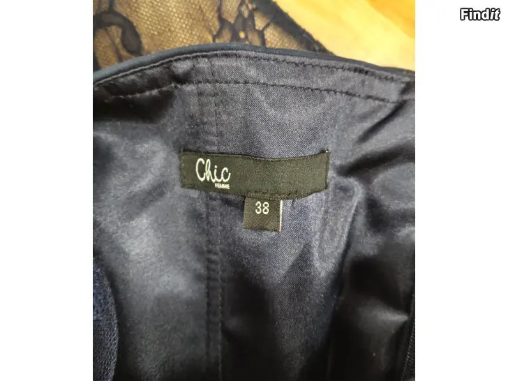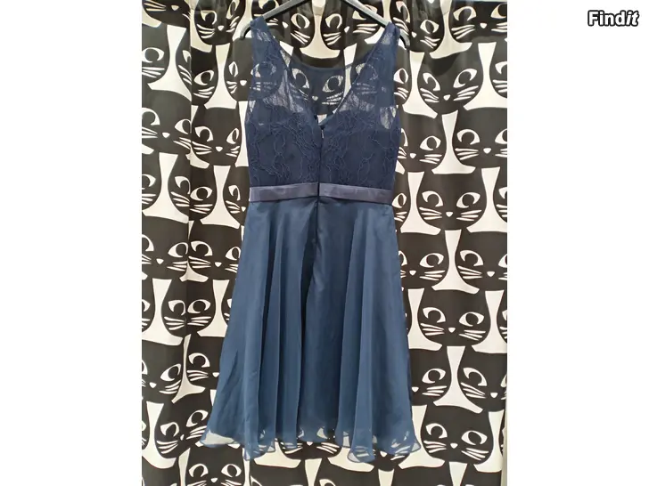 Tummansininen Chic femme juhlamekko, koko 38. Yläosassa korsetti.