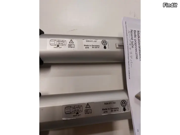 Telineissä olevalla VW:n numerolla 5G9.071.151 saat netistä googlaamalla lisätietoja sopivuudesta autoosi