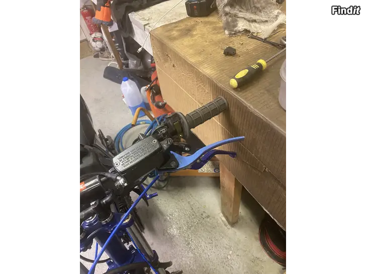 Den har också ny frambroms,gasrulle,gasvajer,kopplingshandtag,kopplingsvajer,kåpona,säte,bakbromsklossar,växellåda,växelförar.