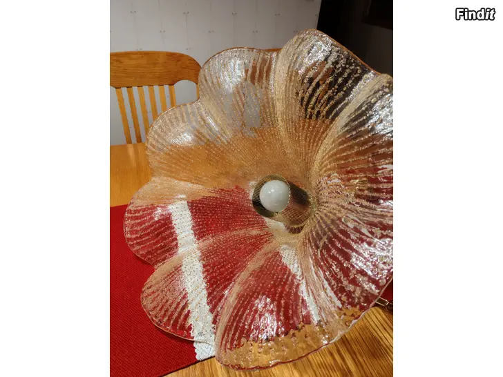 Rubust fin taklampa i glas och mässing. 50 cm i diameter.