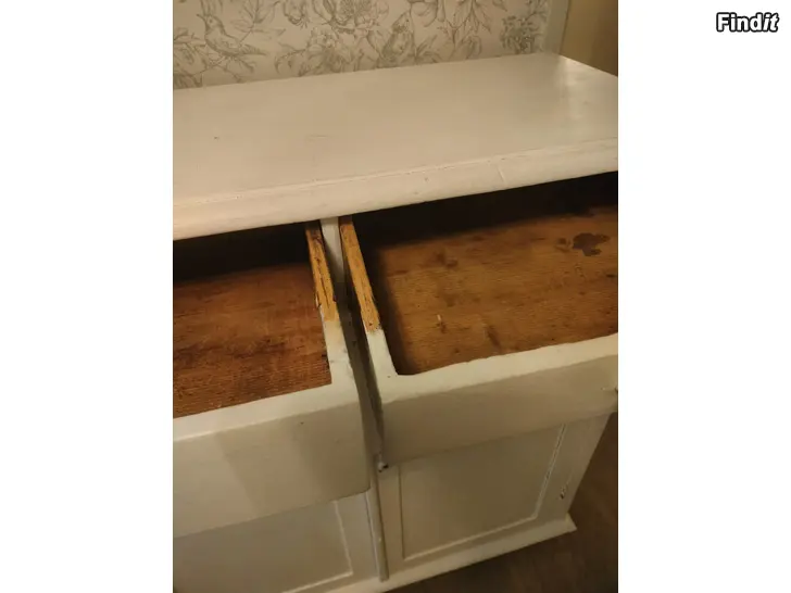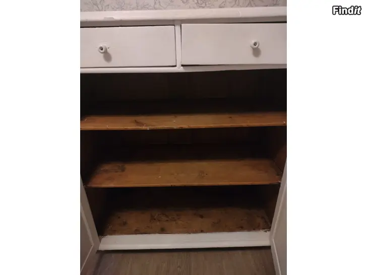 Säljes gediget gammalt skåp...har blivit målad med kalkfärg ... Ytan har lossnat på ställen.. är i behov av ny färg...mått : höjd 117.5 cm..bredd 110 cm..djup 44 cm