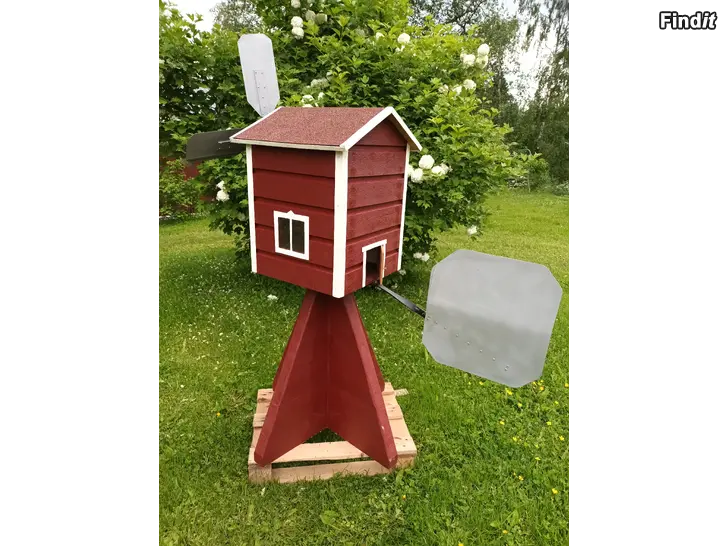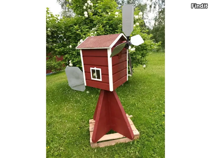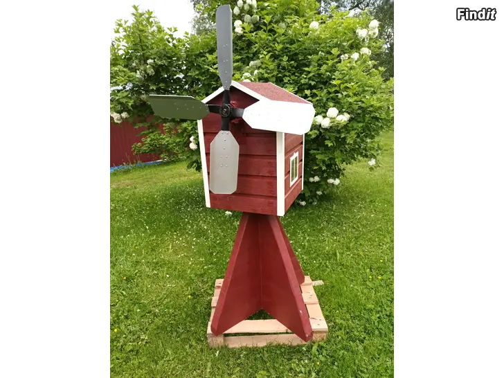 Tuulimylly korkeus kurkiaiselle 1,17 m siipien kärkiväli 68cm lahjaksi tai tuulen suunnan näyttäjäksi Siivet ja yläosa iroitetavissa kuljetusta varten