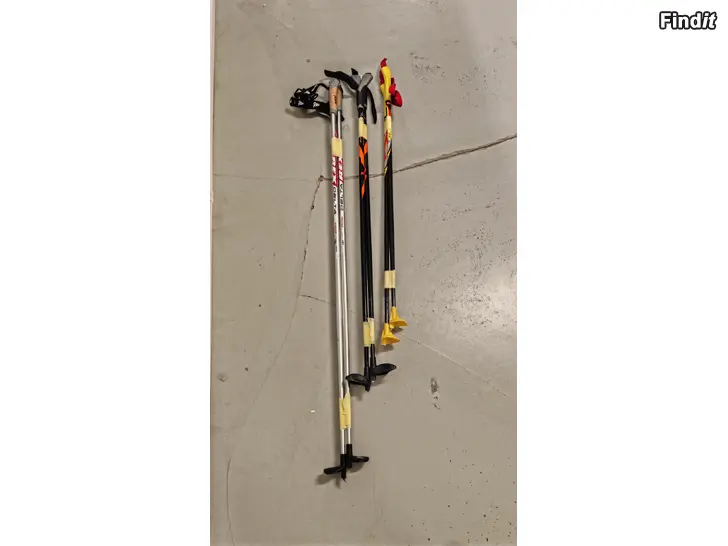 Hiihtosauvat 90 cm, 100 cm ja 120 cm. Hinta 7-9 euroa. Comboliina kirpputori hylly 163, Vaasa.