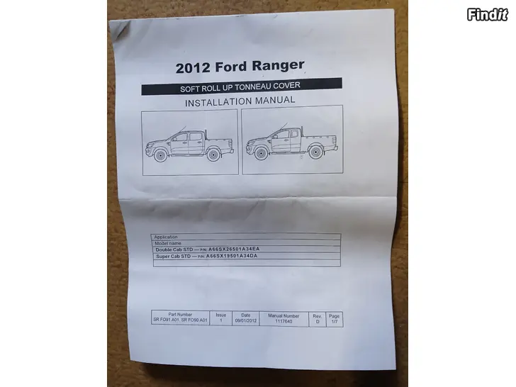 Uusi alkuperäinen tehtaanpaketissa oleva Fordin käyttämätön lavakate/peite Ford Ranger Super Cab 4 oviseen 2011- ja siitä eteenpäin oleviin vuosimalleihin. Kuten näet kuvasta 3 niin ovh. 1160,19€. Tämän saat puoleen hintaan 580€/netto. Voin myös lähettää Postin tai Matkahuollon kautta +38€. Toimi nopeasti, ei varauksia. Parhaiten mut tavoittaa numerosta 0503556677 soitto/viesti.
