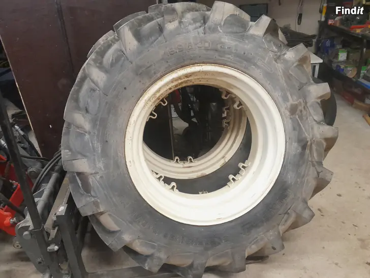 Myyd. käytetyt Valmetin pyörät 16,9R30 Taurus vyörenkailla, Valmetin paripultti kiinnike vanteilla.