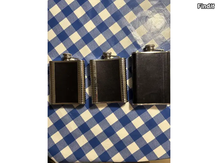 2 st oanvända fickpluntor med logo och en använd ngt större, 5 euro per plunta.