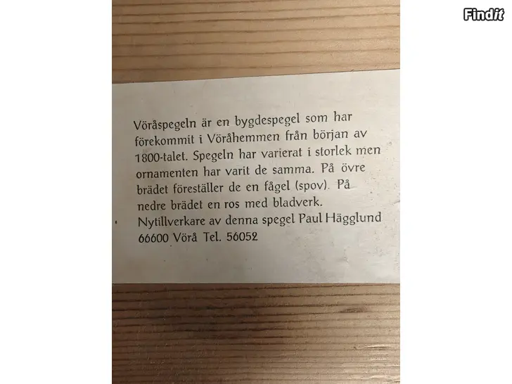 Vörå spegel säljes som obehövlig.