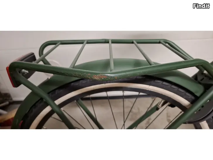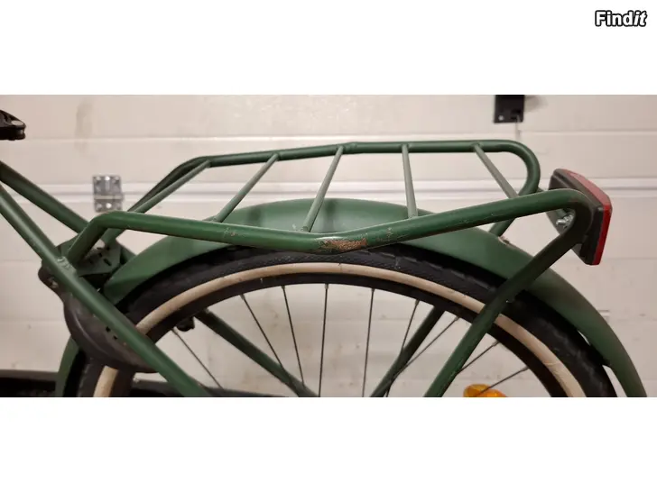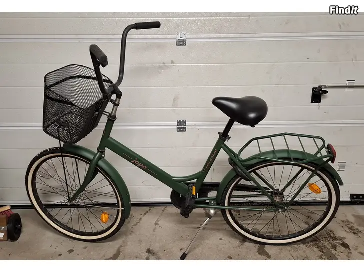 Aito ja hyväkuntoinen tummanvihreä Jopo ylimääräisenä. Pyörässä uudet renkaat ja tavarakori. Mukaan myös yksi avain lukkoon. Muutama käytönjälki löytyy.