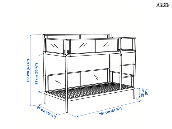 Ikea Högsäng i bra skick. Mått syns på bild. Utan madrasser. Nya finns billigt på Ikea