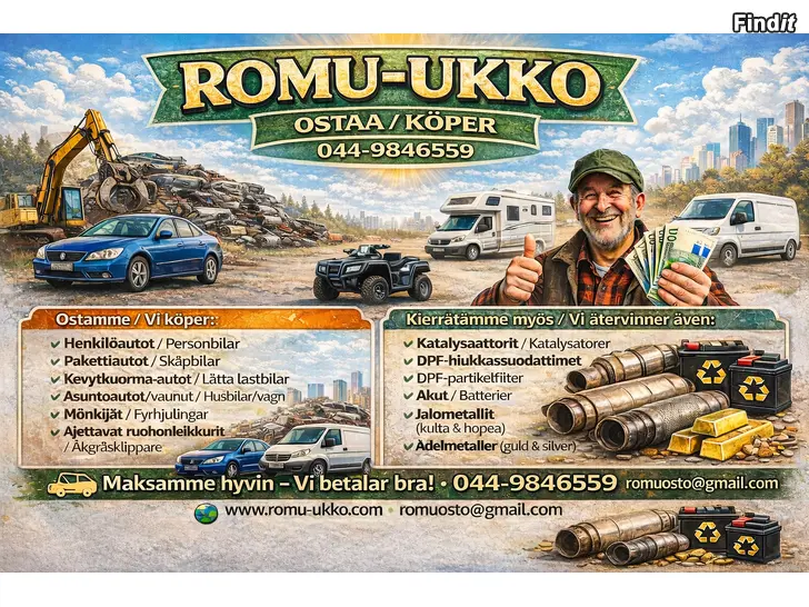 Kaikenkuntoiset ajoneuvot Henkilö, paketti, kuormaautot, ajoleikkurit, mönkijät, katalysaattorit ym