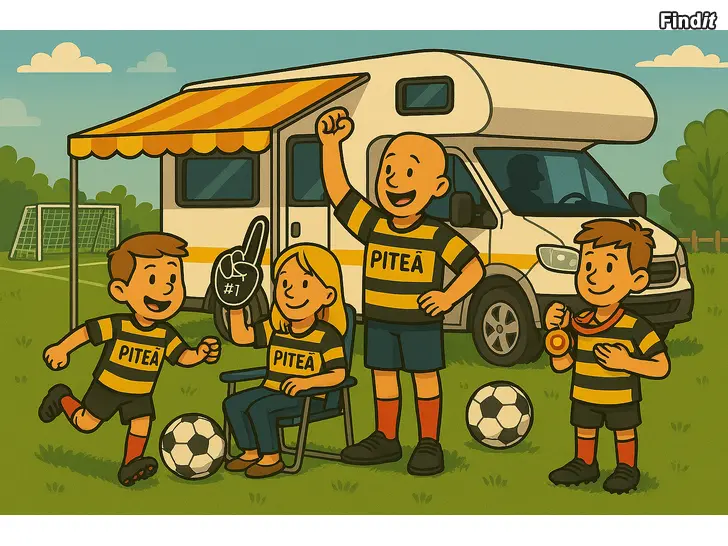 Två vuxna samt två barn som söker husbil för PiteåCup.