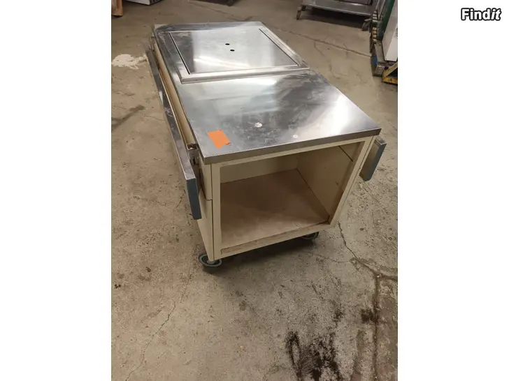 Avställningsbord med fjädrande underlag åt diskmaskin korgar med glas tex, hjul under, på ändan utrymme för matbrickor, brädd 120cm, ring tel 0400767223